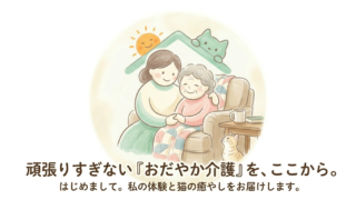 在宅介護で完璧を求め、笑顔を忘れていませんか?母の自宅介護で心折れそうになった私を救ったのは、ちょっとした工夫と猫の存在でした。「おだやか介護日和」では、実体験に基づいた心の整え方や介護術をお届けします。一人で悩まず、ここでお休みください。